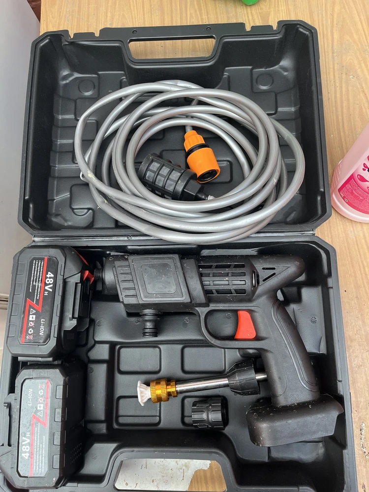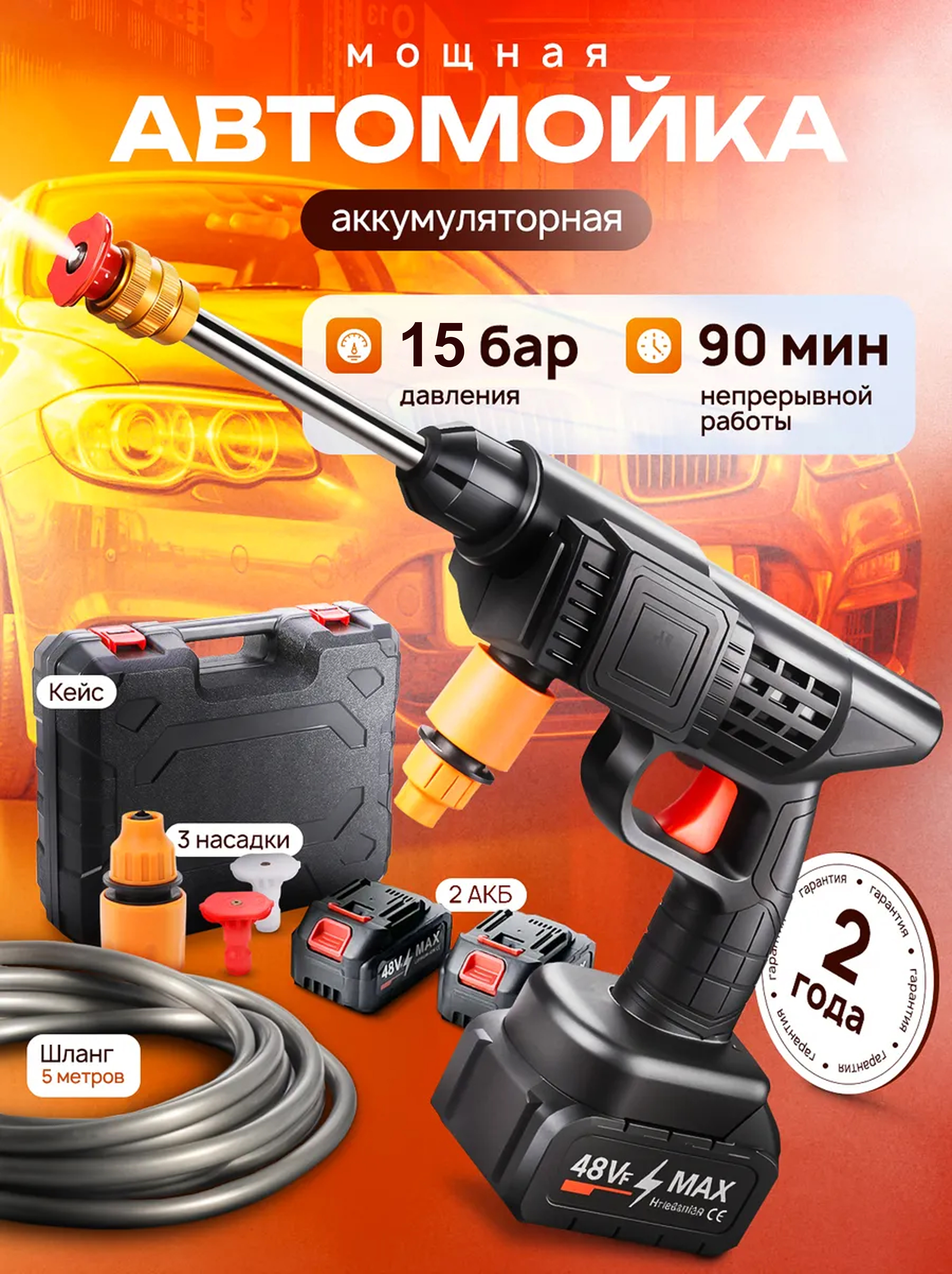 Представляем вашему вниманию идеальное решение для мойки автомобилей и не только — аккумуляторная миниавтомойка! Эта портативная электромойка обладает высокой мощностью и обеспечивает бесконтактную мойку с использованием воды под высоким давлением. Компактный и удобный инструмент идеально подходит как для мойки автомобилей, так и для ухода за садом и огородом.