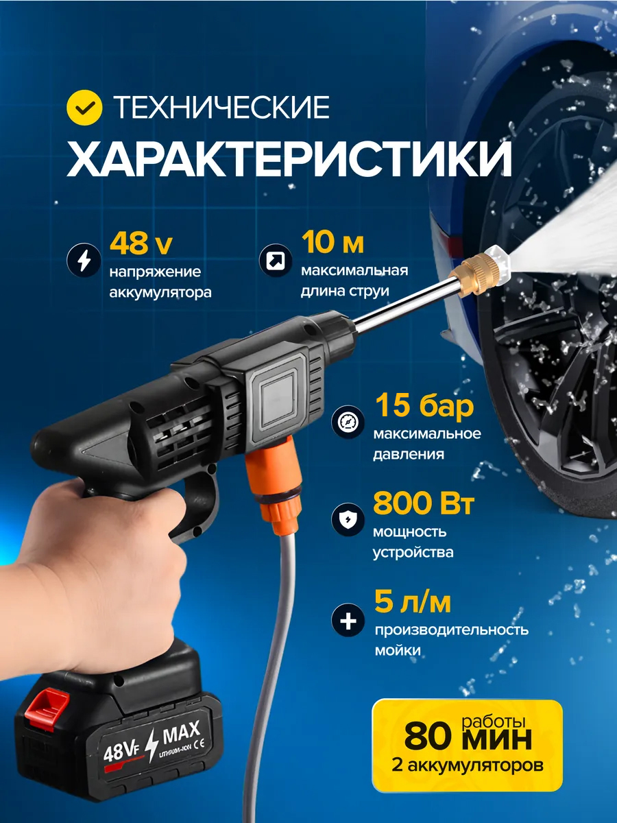 Представляем вашему вниманию идеальное решение для мойки автомобилей и не только — аккумуляторная миниавтомойка! Эта портативная электромойка обладает высокой мощностью и обеспечивает бесконтактную мойку с использованием воды под высоким давлением. Компактный и удобный инструмент идеально подходит как для мойки автомобилей, так и для ухода за садом и огородом.